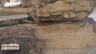 Ese rotulo de la piedra junto al cartel deteriorado llevan años, años y nadie los repara.