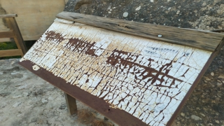 Ese rotulo de la piedra junto al cartel deteriorado llevan años, años y nadie los repara.